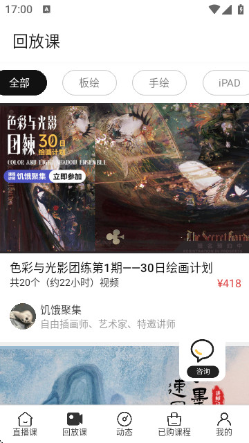 4、高清直播课程查看,手机上看课程轻松学习绘画知识,不管是理论知识,还是实践,提高您的绘画水平轻松了不少。