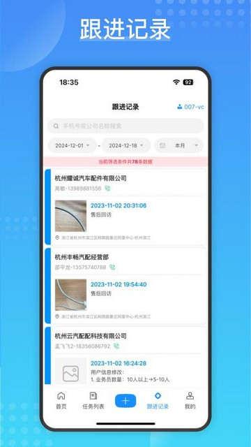 2、简单便捷的客户跟进模式,详细的客户信息,方便日常做售后回访,提供贴心服务;