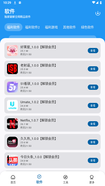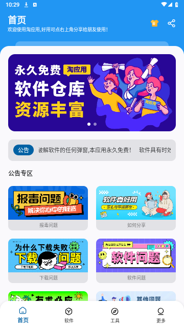 淘应用是一款资源丰富的软件库,这里分为了福利软件,实用软件,精品软件,游戏娱乐等多个板块,每一个板块里面都可以找到许多高人气资源,让你可以直接下载安装。