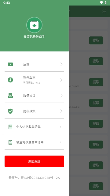 支持将软件提取的安装包数据,分享到其他app,通过其他app进行传输;