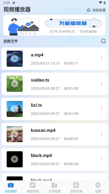 视频播放器磁力种子APP是一款非常简单好用的手机视频播放软件,这款软件不仅可以帮助大家来轻松播放本地各种视频文件资源给大家,观看起来非常的流畅稳定,而且还支持音频、视频剪辑、文件管理等多种功能服务,需要的话快来下载吧!