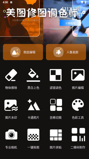 美图修图调色师App这款修图服务软件绝对能够让用户们特别满意,软件中没有任何的限制只管在这里进行手机修图服务就好了,在这里涵盖多样酷炫滤镜和美颜效果,内置超多个性化图片编辑工具,轻松满足不同用户图片编辑和制作需求,需要的朋友们快来下载吧。