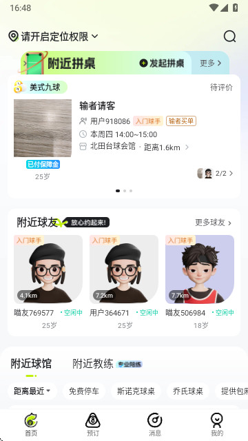 支持用户可以寻找需要的助教陪练,找到同好搭子来轻松陪练打台球,随时配置人数。