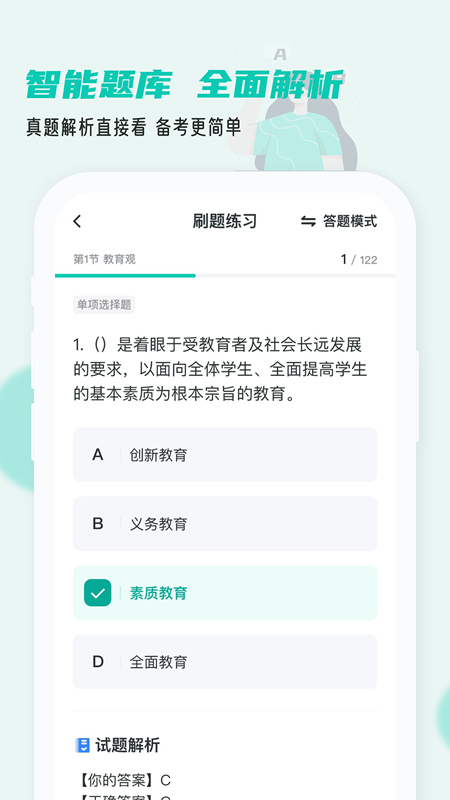 1.专为您打造的学习神器,内置与教师资格证相关的各种题库资源,可随时学习;