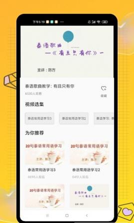 2、泰语教学通过软件中的泰语教学,让你可以更好的进行学习,提高自己的泰语水平。