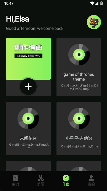 用户可以直接在线进行歌曲创作,将你创作的歌词内容添加记录下来。