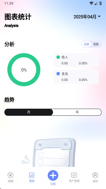 图表统计用户的收支数据,可以让用户的收入、支出趋势更加的直观明了。