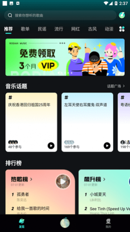2、热门推荐:每天都会为大家推荐各种热门的音乐,让大家轻松听到自己喜欢的音乐。