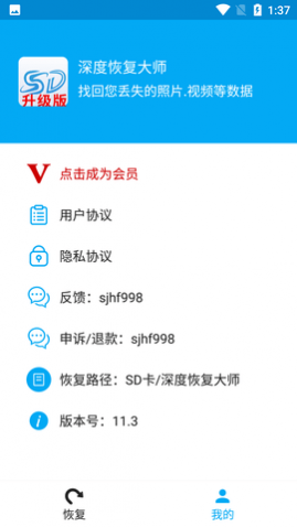深度恢复大师免费会员版是一款专业的数据恢复软件,深度恢复大师免费会员版软件支持误删数据的恢复,可以恢复的类型很多,比如照片、视频、音频、文档、应用程序等,让你可以更好的去进行数据的恢复,保证不会出现数据丢失的情况,还有各种数据的备份功能,可以保护你的数据,让你不用担心数据的丢失,各种数据都可以快速的恢复,还可以一键转发,轻松进行转发,让你可以更好的使用。