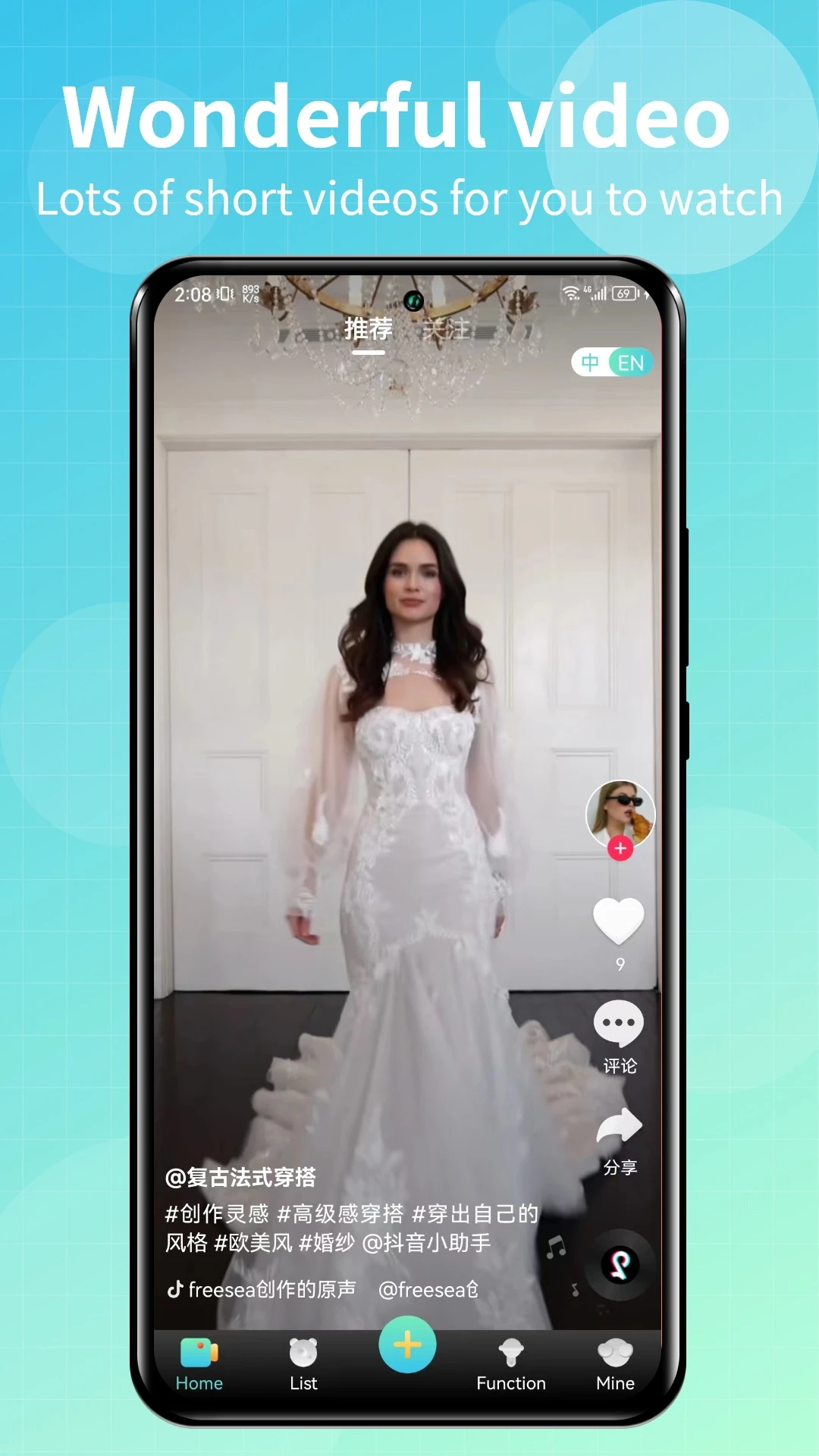 1.一种独特的短视频创作工具,允许用户使用各种滤镜、特效和镜头创建自己的短视频内容;