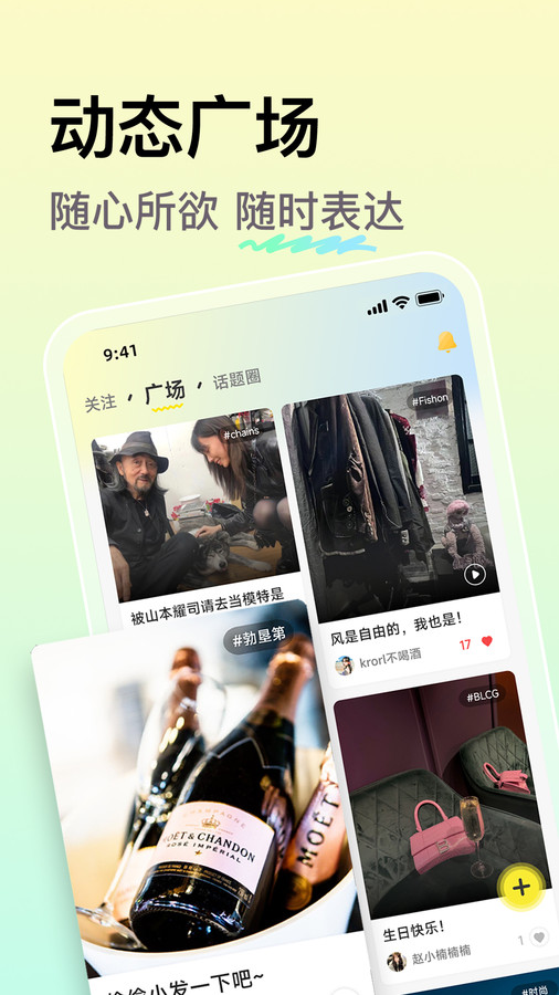 1、动感广场,随时表达你的情绪,轻松交朋友;