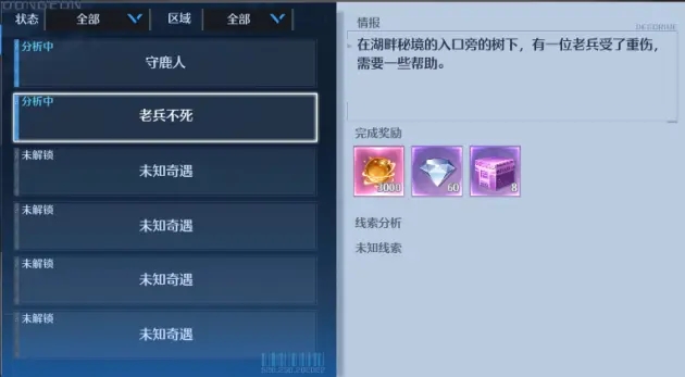 在湖畔秘境入口旁边的树下,靠近老兵瑞吉npc即可触发