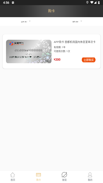 3、通过城市与服务类型可以筛选购卡,快速筛选满意的服务。