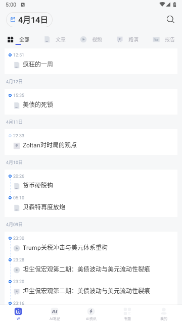 3、涵盖多元化信息来源,演讲、论文、研报应有尽有。