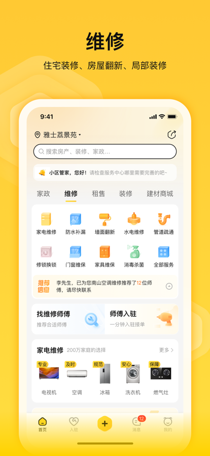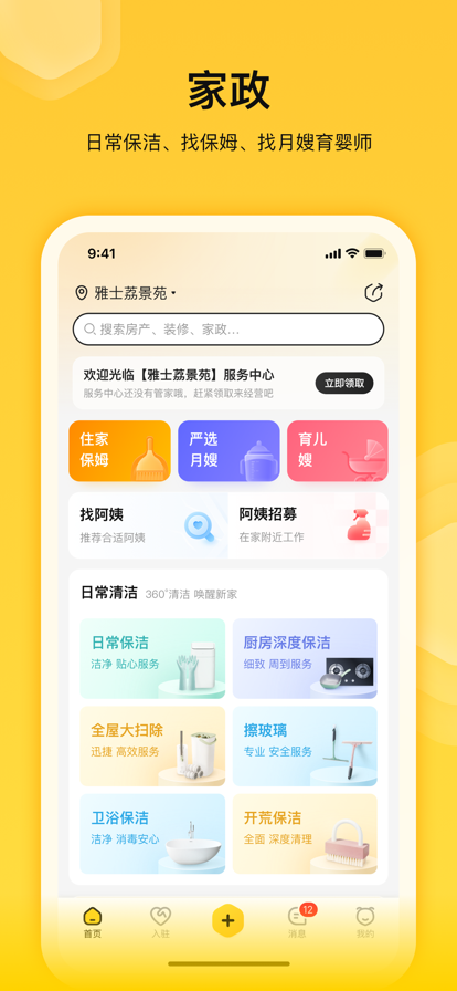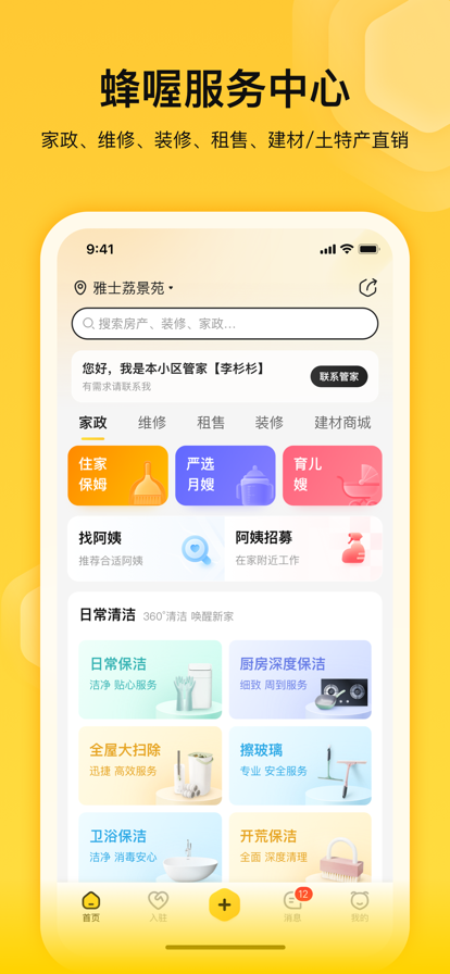 小区生活好帮手!蜂喔提供家政保洁、白班保姆月嫂、钟点工、日常维修、住宅装修、局部装修、局部改造等家庭服务。生活超市、日用商品优惠采购