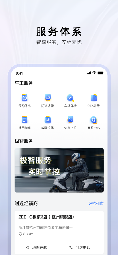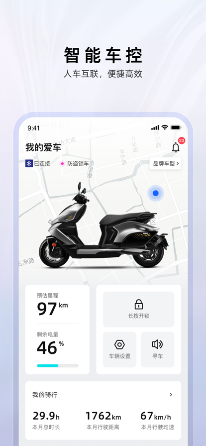 --这是款专为电动摩托车设计的车载服务软件,用户可以通过手机连接自己的电动摩托车。
