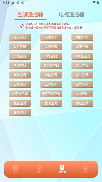 好用遥控器是一款拥有多功能家居智能设备手机遥控管理的应用软件,在这里支持不同品牌与型号智能设备遥控连接,只需要手机支持红外功能,就可以直接手机秒变遥控板,轻松控制家庭当中所有的遥控设备,电视机、空调等家居设备都可进行手机遥控连接。