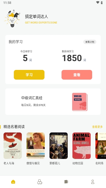 用户也可以精选单词来随时随地的背诵,以便可以积累更多的词汇量,实时追踪单词学习进度。