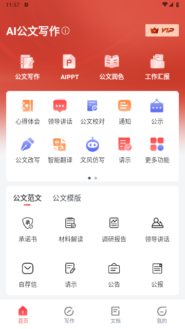 4.内含公文范文、公文模板、海量资料库,满足不同的写作需求,让写作更广泛。