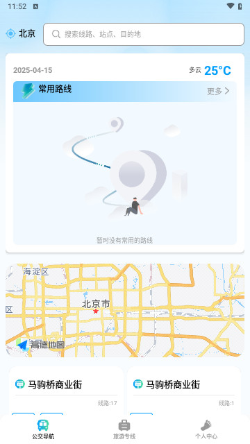 3、可以自定义设置常用公交乘坐路线,查看到更多。