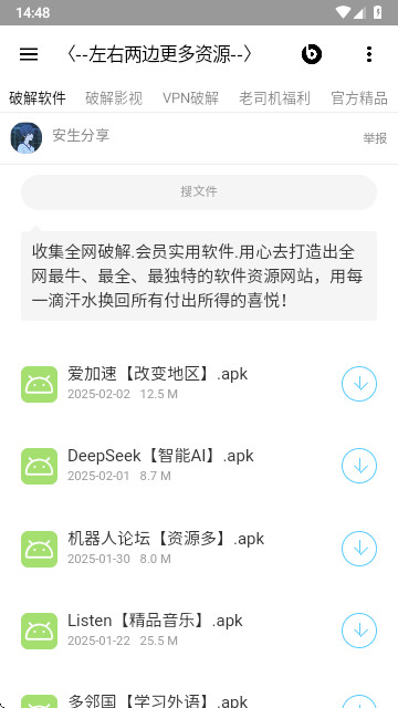 安生软件库app是一款很多人都在用的软件资源下载平台app,在这里面提供了非常多的免费资源供大家进行下载,非常的全面,随时都可以进行下载的,总体上功能也是相当的好用,满足了大家不同的下载需求。感兴趣的小伙伴们,快来本站进行下现在体验吧。