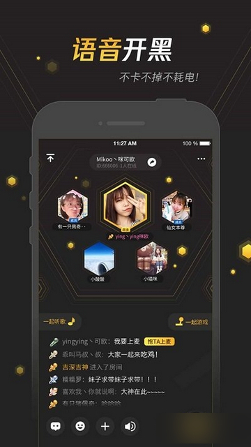 C位、连麦、声优、音乐等跨领域多元化语音内容玩法,全新的语音交友平台,靓号、电量、头像框、表情包等丰富的成长体系玩法,从此告别枯燥的游戏时间。