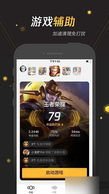 各种手游礼包、游戏福利、新游预约,涵盖王者荣耀、全民飞机大战、qq飞车、穿越火线、绝地求生刺激战场等几十款热门游戏,为你的角色添砖加瓦。一键启动系统优化,游戏加速,做最贴心的手游助手,整个游戏过程更顺畅。