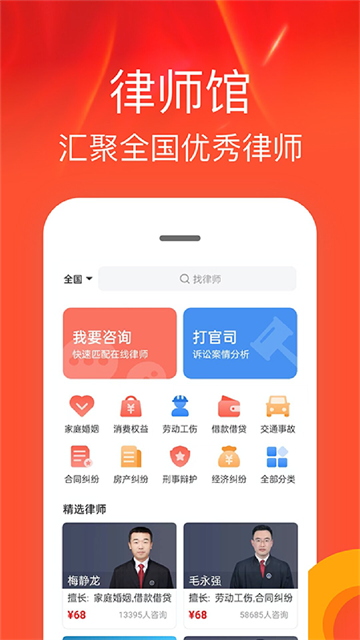 律师馆为用户提供全球海量的律师,帮助用户解决各种各样的问题;