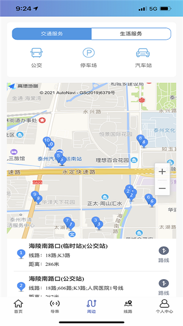 泰州好出行与高德地图联网,“实时公交”自动识别当前附近站点,查看公交实时信息,查询车辆实时位置,运用大数据精准预测到站时间,切实方便市民乘坐公交车