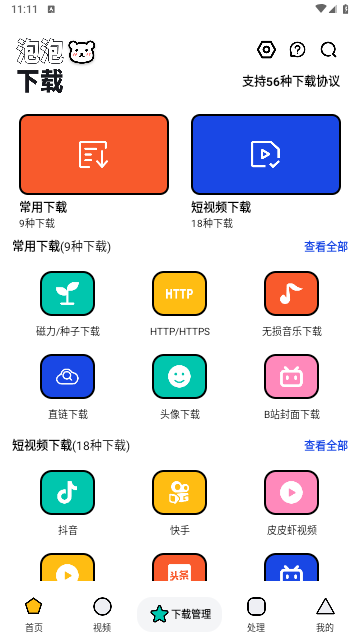 泡泡熊下载器是一款智能便捷、功能强大的手机下载工具。它采用先进下载技术,能确保大型文件或多任务下载时速度快且稳定。软件界面简洁明了无广告,用户可专注下载。其最大特色是支持多达56种下载协议,涵盖HTTP、HTTPS、FTP等常见类型,可满足多样化下载需求。