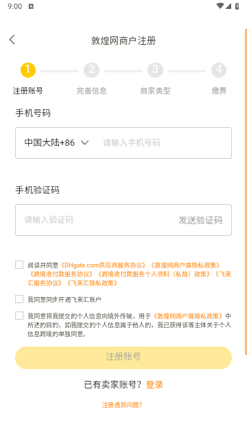 1.打开敦煌网官网点击立即注册:https://seller.dhgate.com/