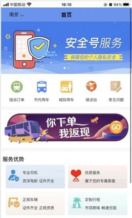 1、可以线上预约出行,保障用户的人身安全,用最优惠的价格享受舒服的服务