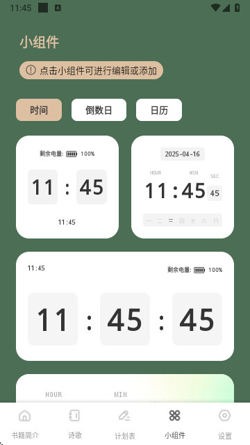 5.可以在小组件页面中查找到你需要的小组件进行一键使用;