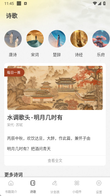 2.可以根据诗词分类找到你感兴趣类型的诗词内容进行学习查看;