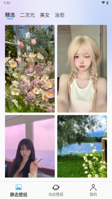 壁纸荟APP中汇集了海量精美壁纸资源,超多热门主题壁纸在这里都可以轻松找到,无论动态壁纸还是静态壁纸应有尽有,种类也是非常齐全,各种精选、二次元、美女、治愈壁纸一应俱全,而且全都是免费的,高清画质,可以很好的适配不同用户机型。
