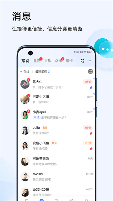 淘宝卖家版app也叫千牛,是一款非常好用的店铺经营工作平台,这款软件覆盖了店铺经营的各项环节,包括开店、商品、交易、退款、评价、账号管理、活动报名等,让用户可以更加便捷的管理好自己的店铺,喜欢的小伙伴可以来本站下载体验哦!