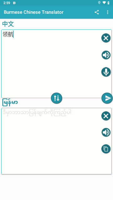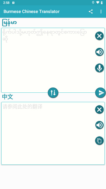 3、文本翻译:接入缅甸本地语言库,支持汉语、缅甸语互译,输入文本一键翻译