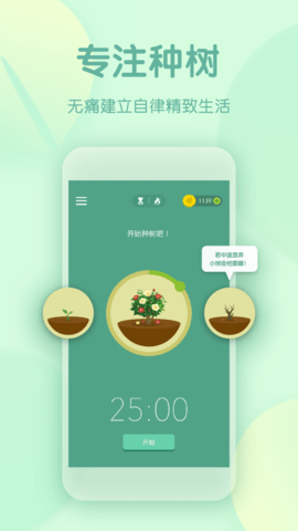 2、游戏化机制——持续推出更美的可爱树种图鉴,积累专注时间管理的同时还可以金币解锁可爱小树,搭配成就机制,让你在游戏中无痛戒手机、养成好习惯!