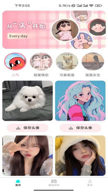 3、点击头像分类,可轻松查找喜欢的头像图片,还能直接点击预览下载。