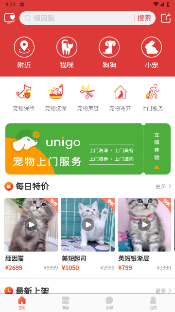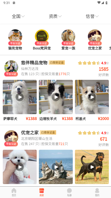 宠物市场是一款宠物一站式服务软件,用户可以通过软件与商户进行交流,购买宠物或相关用品。软件的商家认证和担保交易机制确保了交易的可靠性和安全性,用户可以放心购买。软件支持宠物视频发布,使得宠物展示更加真实可靠,快来下载吧。