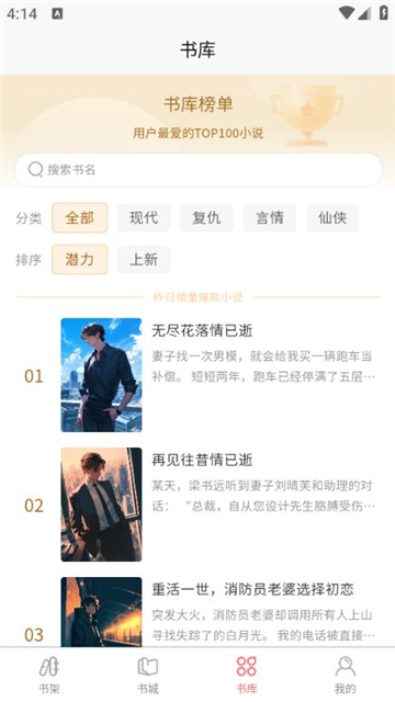 2、汇聚全网各类热门神作,小说资源海量且丰富,流行爆款小说,经典小说,都能在软件中找到。