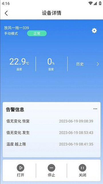 提供实时查询设备运行情况:了解设备的当前工作状态,包括温度、湿度、电池电量等信息,方便用户随时掌握设备的运行情况。