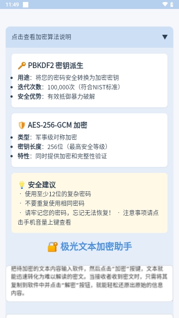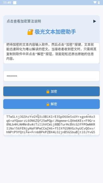 文本加密工具APP是一款兼容性非常强大好用的手机文本加密工具,这款软件可以帮助大家来轻松完成对文本的加密使用,支持多种不同格式文本的加密使用操作,上手起来非常的简单轻松,能够很好的满足大家不同的场景使用需求,欢迎大家来下载。