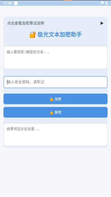 文本加密工具APP为大家带来的电子文本加密服务是非常可靠的,加密从挨揍简单,能够轻松快速完成对输入的文本进行加密服务,能够很好的守护用户的隐私信息安全,为大家的数据安全提供一个有力的保障服务,感兴趣的话快来试试看吧!