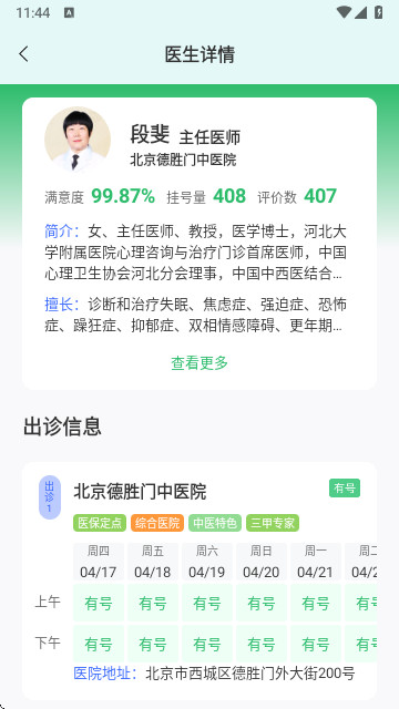 将每个医院的详情简介全面介绍展示,便于用户查看医院简介,增加对各个医院的了解,便于用户更好的选择适合你的专科医院挂号就诊,同时还有各位名医的个人简介,查看医生简介便于用户更好的了解医生选择专科医生挂号,有需要的用户就快来下载京医挂号通官网版使用吧!