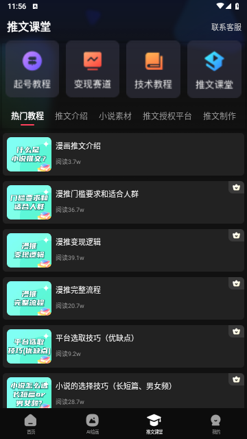 集小说推文转漫画解说、AI创作、短视频创作及变现课堂于一体,满足用户全方位需求,打造一站式创作与变现平台。