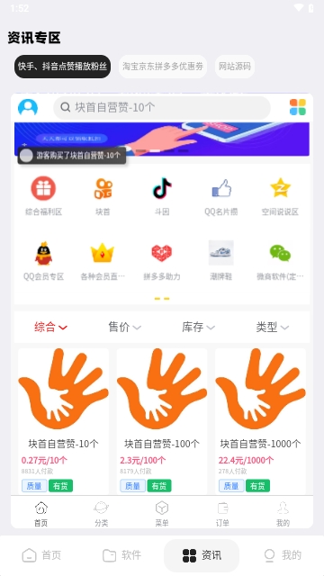 4、在资讯页面为为大家提供了网站源码、淘宝京东拼多多优惠券等超多资讯。