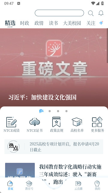 中国教育发布app还涵盖了不同教育阶段的资讯内容,从幼儿园到中小学,再到大学,根据我国的不同教育阶段设计了不同的资讯专栏,不同专栏中有不同的教育资讯相关文章。有需求的小伙伴快来下载体验吧!