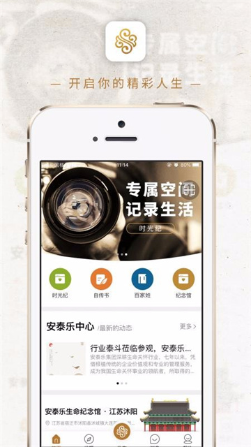 专属空间,记录生活。为长辈记录人生故事、为朋友抒写人生精华、为孩子创造成长记录,为自己开启精彩人生。
