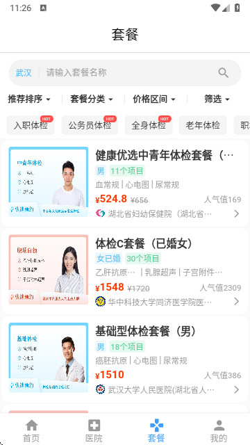 用户可依据年纪、岗位特征、疾并群体特征订购体检套餐内容,vip会员享有廉价特惠。